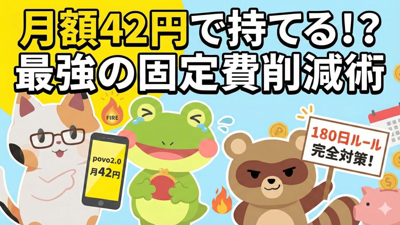 【2026年最新】povo2.0を「月42円」で維持する方法!FPが教える最強の固定費削減術【180日ルール完全対策】